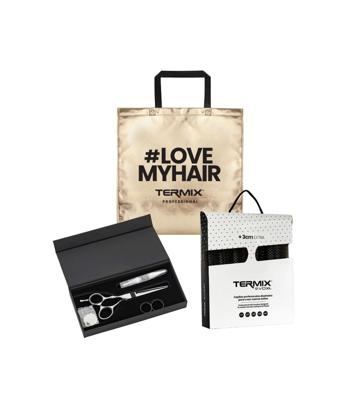 El kit ideal con las herramientas profesionales que combinan precisión, ergonomía y alto rendimiento. Incluye el pack cepillos Evolution XL con los cinco diámetros disponibles (Ø17, Ø23, Ø28, Ø32 y Ø43) y la Tijera de Corte Premium CK23 de alta precisión, juntamente con la Bolsa Gold de Regalo #LoveMyHair.