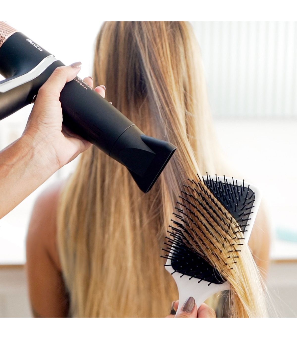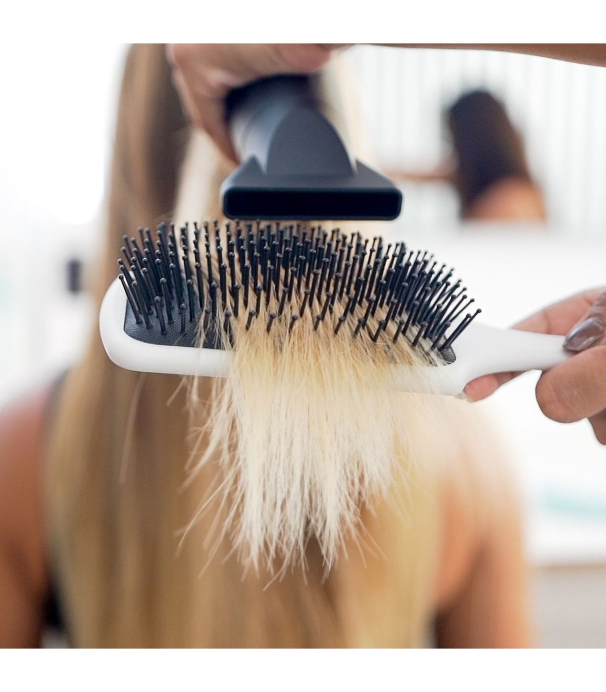· Base extra ancha que permite trabajar secciones grandes de cabello, optimizando el tiempo de brushing.